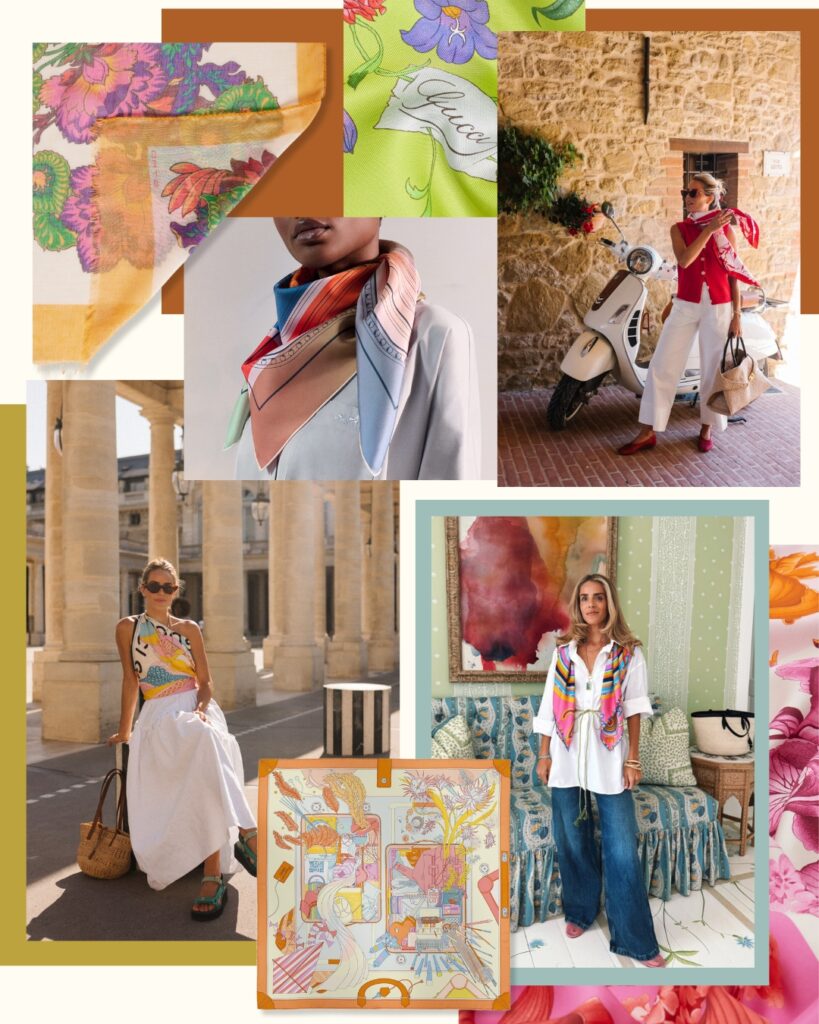 Julia Berolzheimer Spring Scarves That Instantly Elevate An Outfit, featuring the versatility of spring scarves in varying sizes and artful prints—perfect for layering, styling as sarongs, and adding a subtle statement to any look. Source