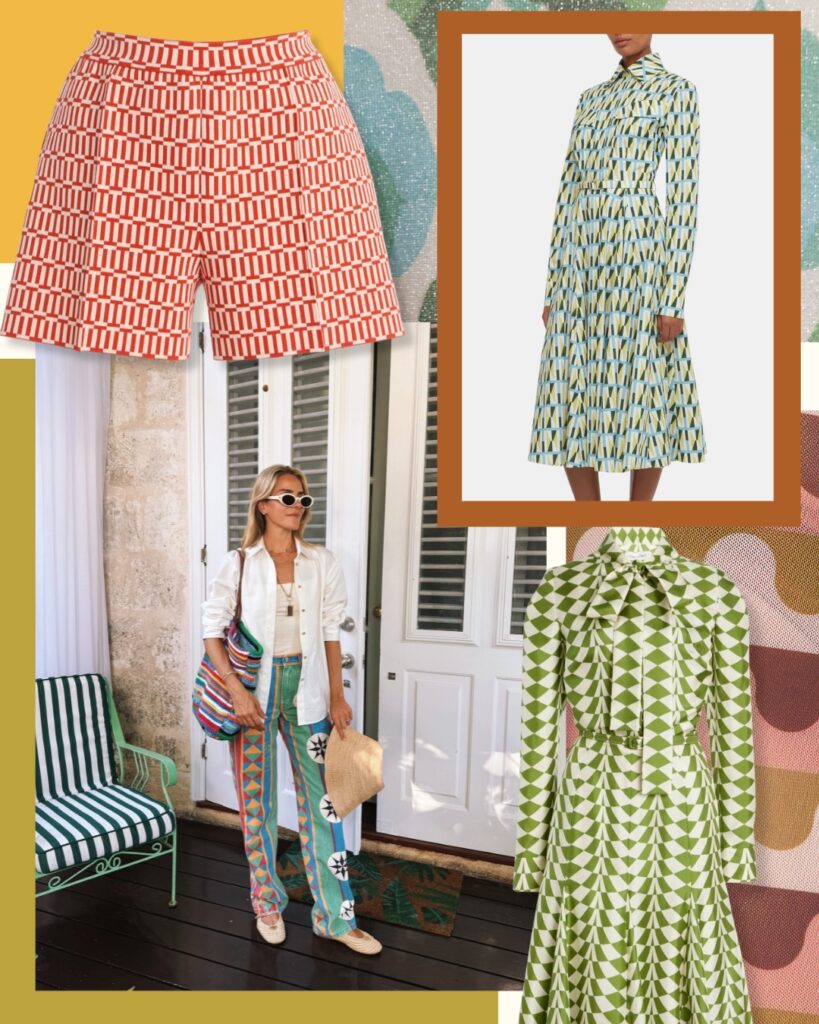Julia Berolzheimer Shape Shifter: The Geo Effect, featuring vintage-inspired patterns and modern shapes that add graphic charm to dresses, blouses, and resort-ready styles. Source