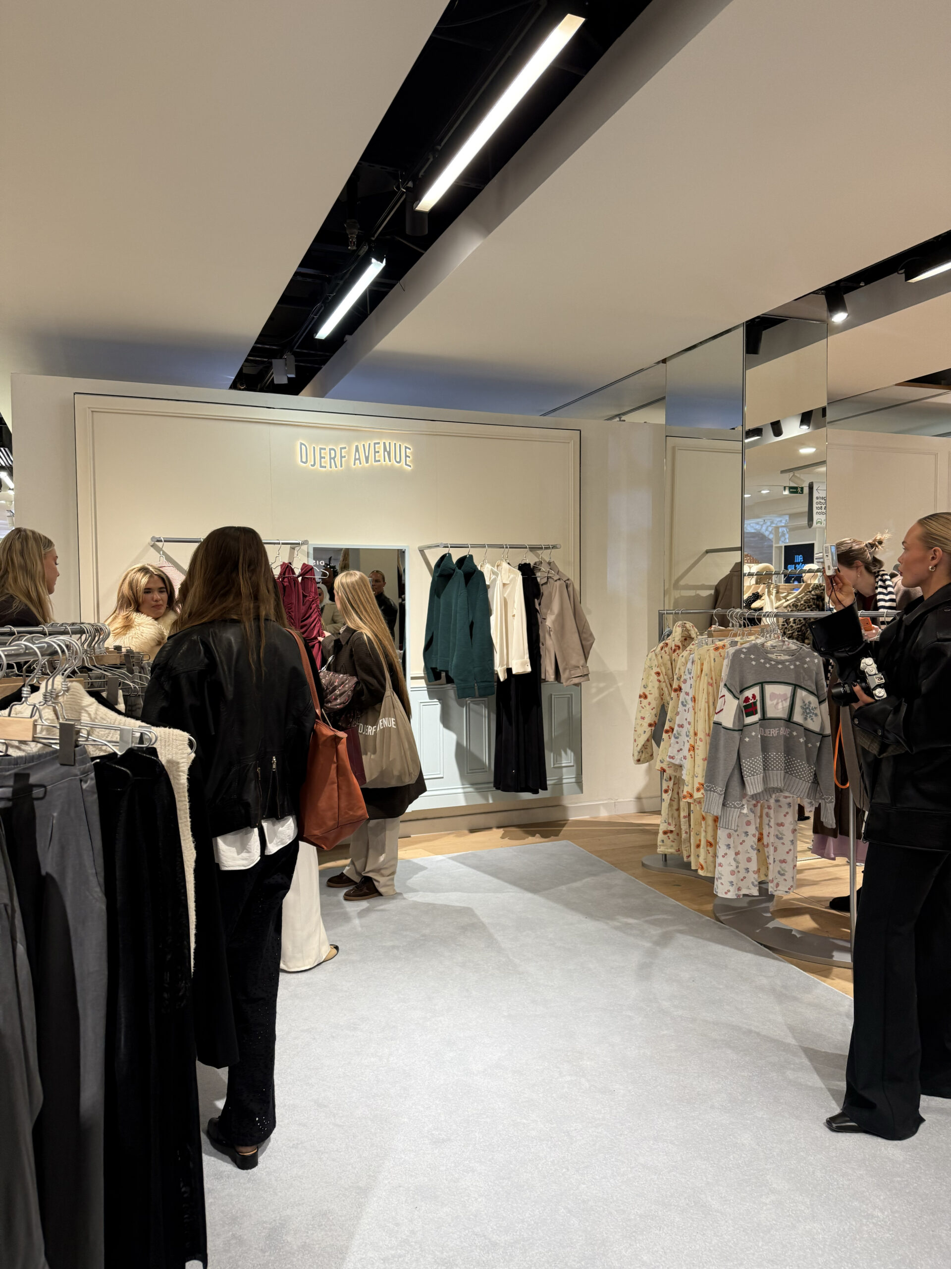 Last Monday morning at 10:02, two minutes after Selfridges opened its doors, Djerf Avenue’s ‘Angels’ flocked up the grand escalators to be the first at the Swedish brand’s new London pop-up and get their hands on its limited edition Christmas pyjamas, sold-out boxy blazers and more. To my amazement, the winding racks were almost cleared after just several minutes.